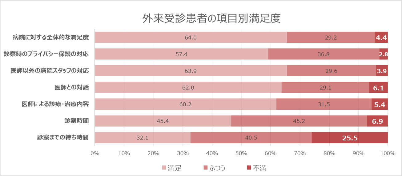 また、外来患者の満足度調査(図1)によると、診察までの待ち時間(25.5%)、診察時間(6.9%)、医師との対話(6.1%)といった項目に対する不満が多く挙げられている。