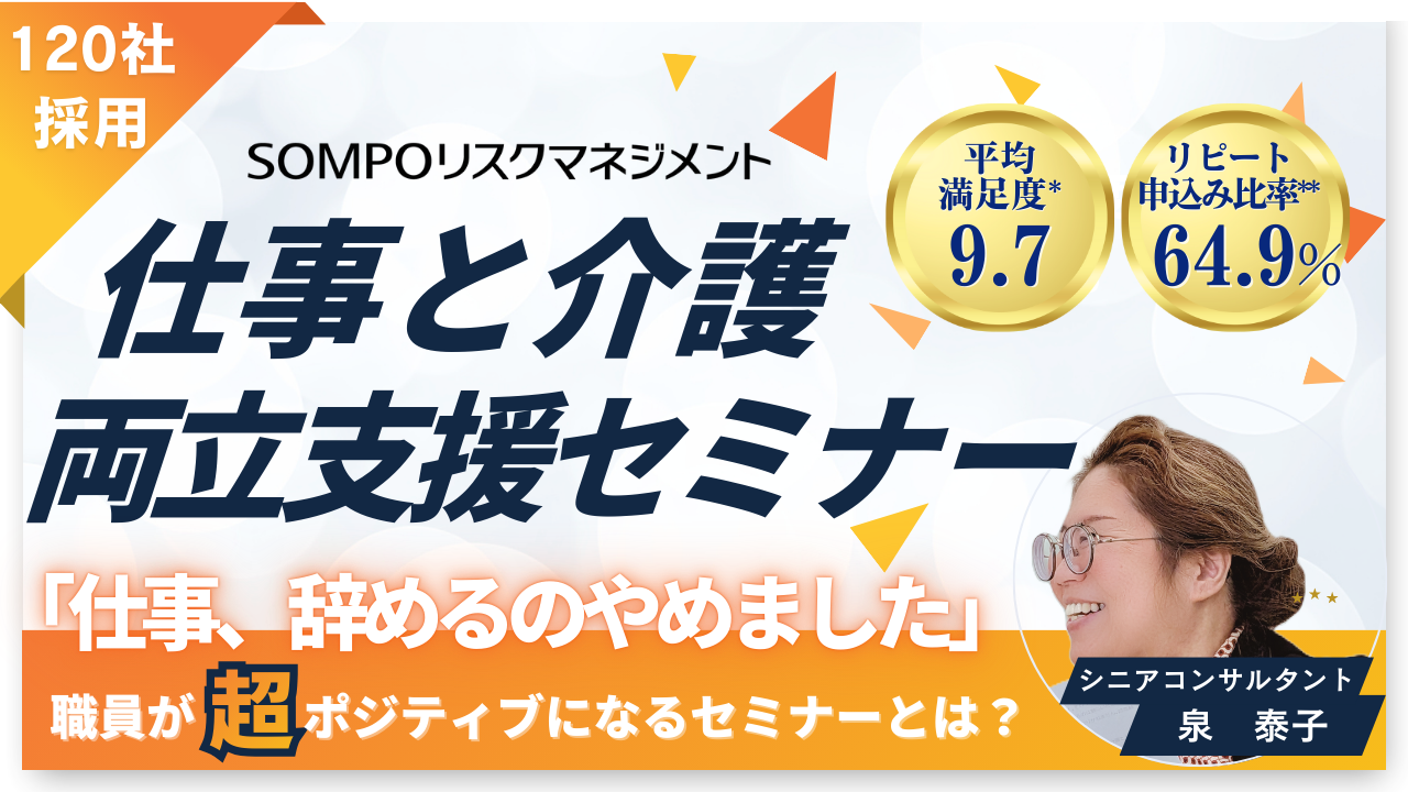 2025年4月1日に「育児・介護休業法」が改正され、事業主が講じなければならない措置の一つとして、介護休業・両立支援制度等に関する研修の実施が位置付けられたほか※1、介護に直面する前の早い段階での労働者への情報提供が義務化されました※2 。SOMPOリスクマネジメントでは、こうした流れに先駆け、2016年から両立支援セミナーを実施してきましたが、これまでに120社で採用、平均満足度9.7、リピート申込み率64.9%と高い評価をいただいています。今回は当社のセミナーが支持される理由について、講師にインタビューしました。