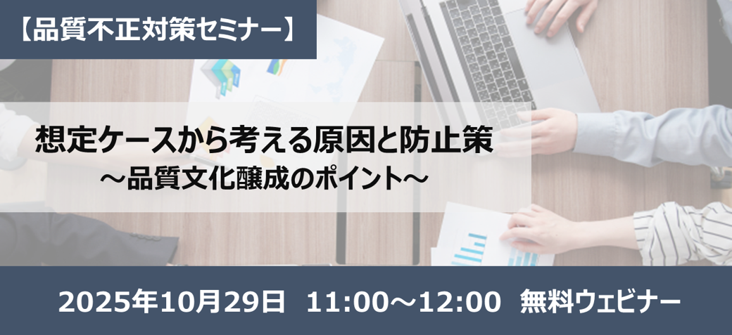 【品質不正対策セミナー】想定ケースから考える原因と防止策~品質文化醸成のヒント~