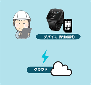 SIM内蔵型デバイス(活動量計)を採用することで、スマートフォンやモバイルルーター等の中継器が不要です。