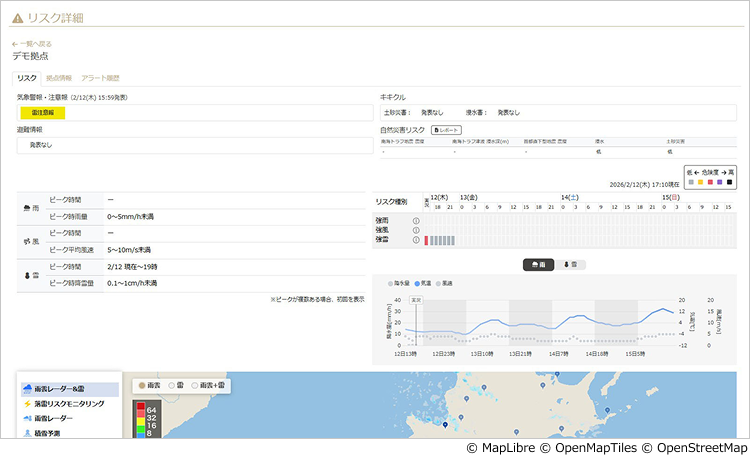 災害リスク情報とリスク予測の一覧で、迅速な判断をサポート
