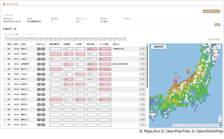 - 2025.11.25国内地震の影響拠点一覧画面がアップデートしました。