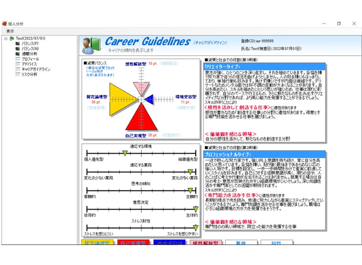 適性検査および組織分析プログラムを実施している社外連携先を紹介いたします。本プログラムは、検査から結果表示まで約7分で完結します。検査精度が高く、個人の特性把握だけでなく、チームビルディング機能やハラスメントリスクなどの観点で結果を活用することが可能です