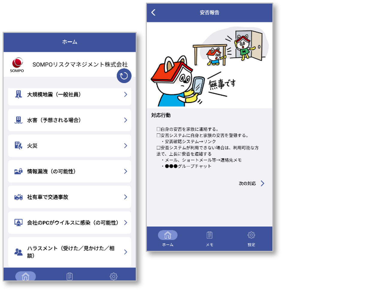 - 災害・インシデント等発生時の基本行動をアプリで確認