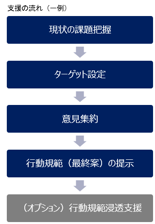 策定された行動規範を浸透させる支援(ハンドブック作成、研修等)についても実施が可能です
