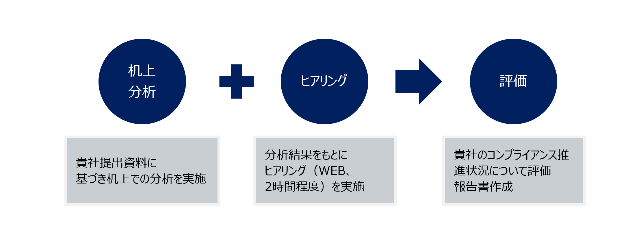 コンプライアンス推進に関する仕組みについて、現状の評価分析を行います。