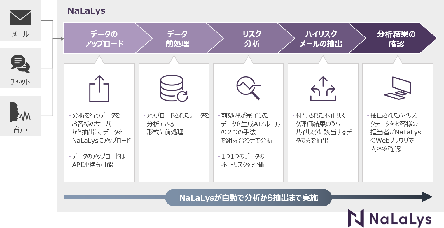 不正が疑われるメール、チャット、音声データを自動検出します。
